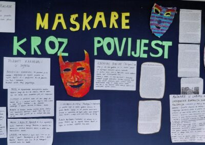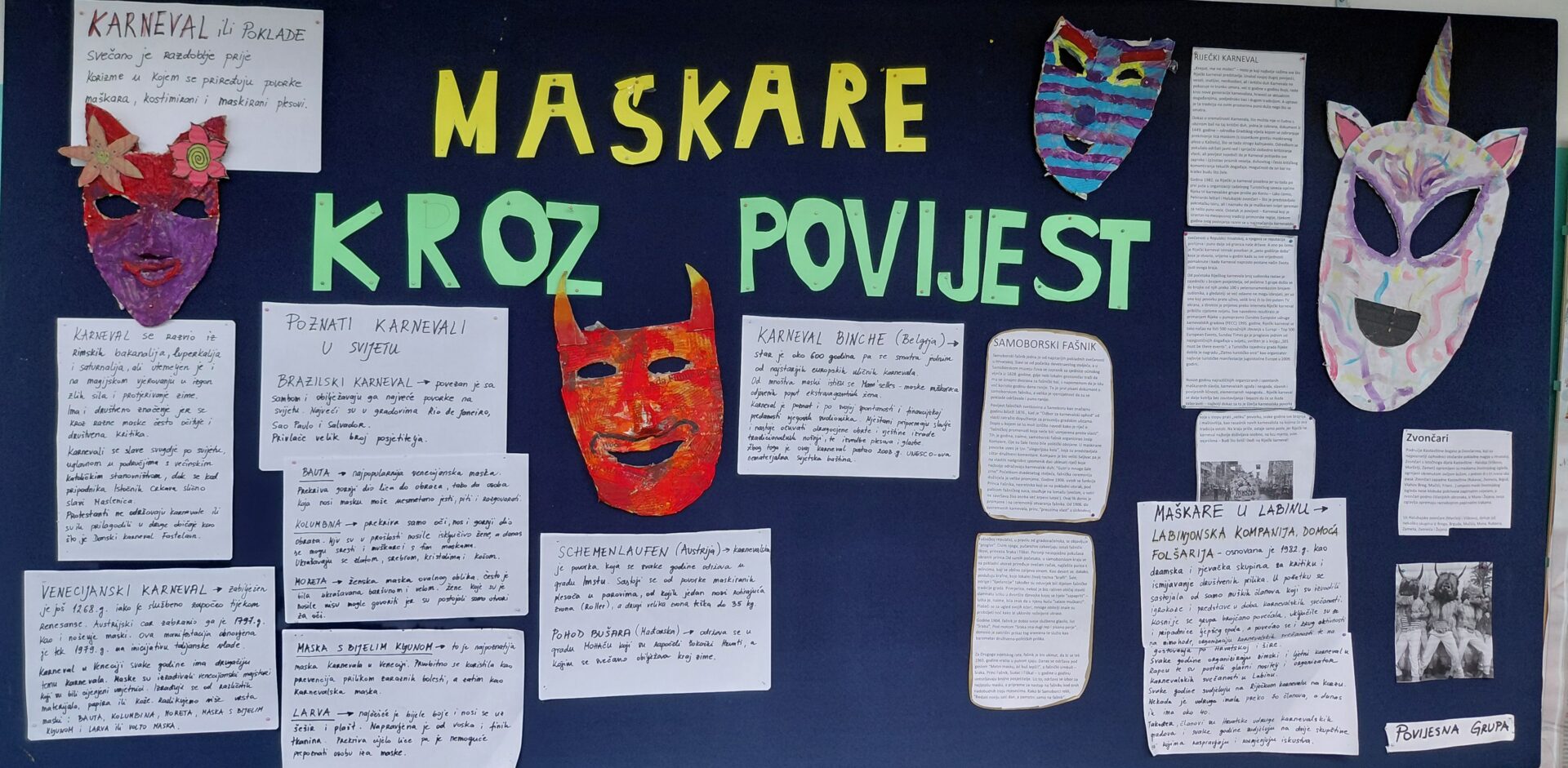 Povodom maškaranih svečanosti povijesna grupa izradila je pano u holu škole posvećen povijesti maškara i karnevala u svijetu, Hrvatskoj i Labinu. Također, likovna grupa ukrasila je hol prigodnim crtežima.
