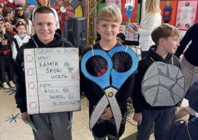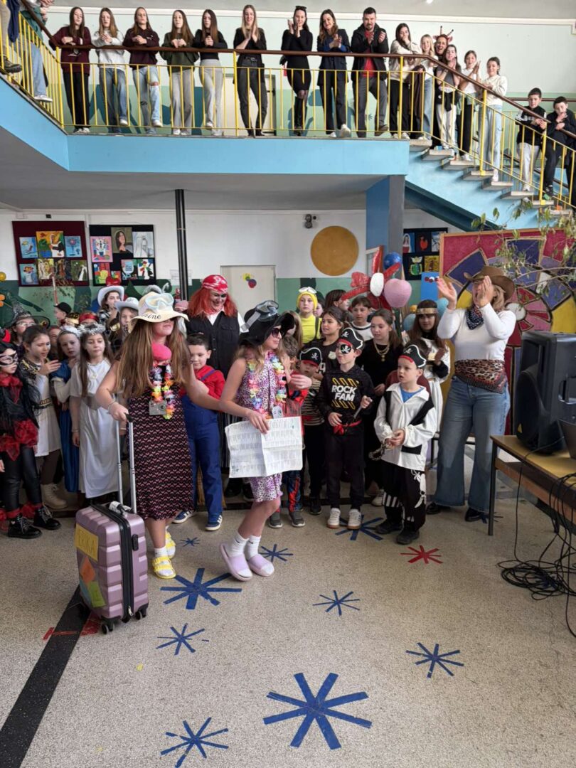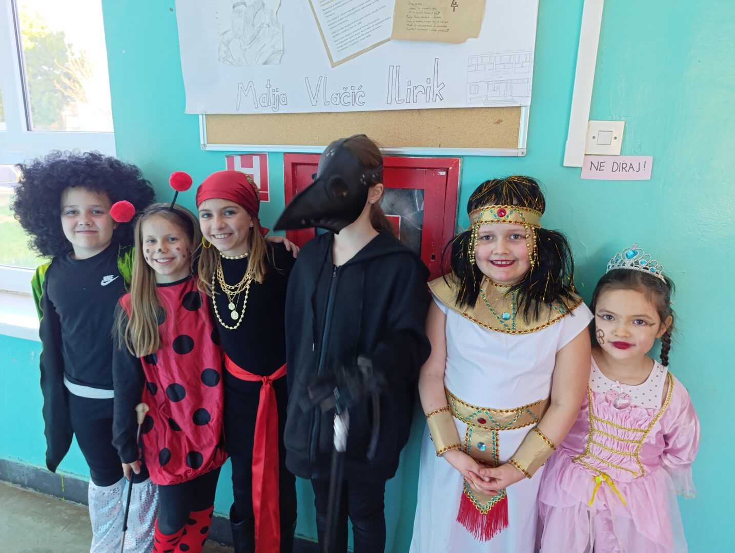 U našoj školi obilježen je najveseliji dan u godini kada svatko može biti netko drugi. Danas je škola bila prepuna šarenih i kreativnih, zabavnih i zanimljivih maski. Učenicima su se u maskiranju pridružile i učiteljice što je dodatno razveselilo učenike naše škole jer je bilo vrlo zabavno pratiti nastavu u izvedbi učiteljice Rimljanke, žirafe, domaćice, Teletubbyisa ili Japanke.