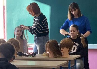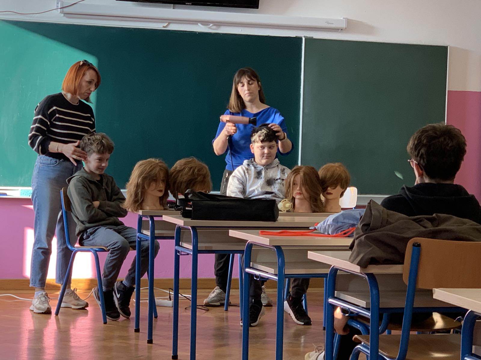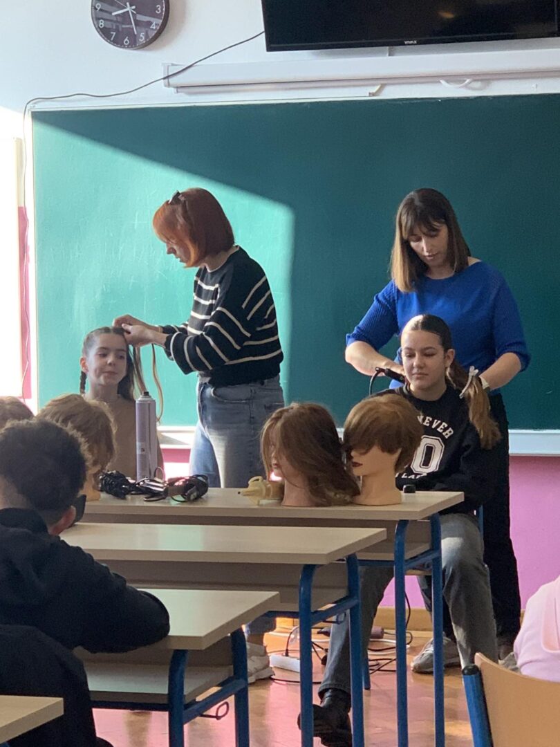 Voditeljice ove radionice su frizerke Tina Išić i Ana Hrelja. Na ovoj radionici je bilo 32 učenika u dvije grupe, 3 dežurne učiteljice Klaudia Blašković, Silvia Česnik i Romi Belanić. Voditeljice su radile raznolike frizure polaznicima i davali im savjete za brigu o kosi. Sudjelovali su cure i dečki koji su dobili nove frizure. Cure su većinom imali pletenice ili nakovrčanu kosu dok dečki su kovrčali kosu. Kako bi se polaznici uvježbali, radili su frizure na vlasuljama (glave lutka sa kosom).