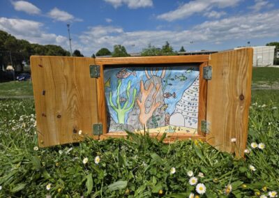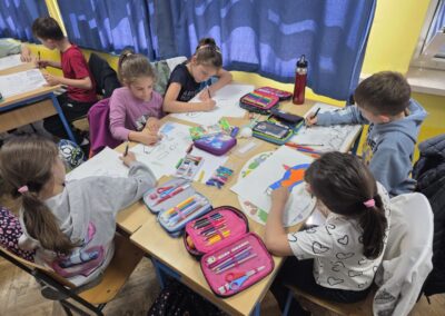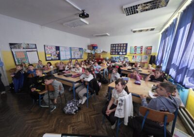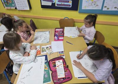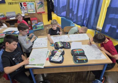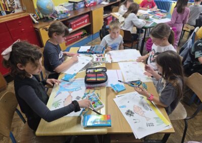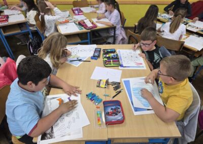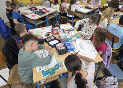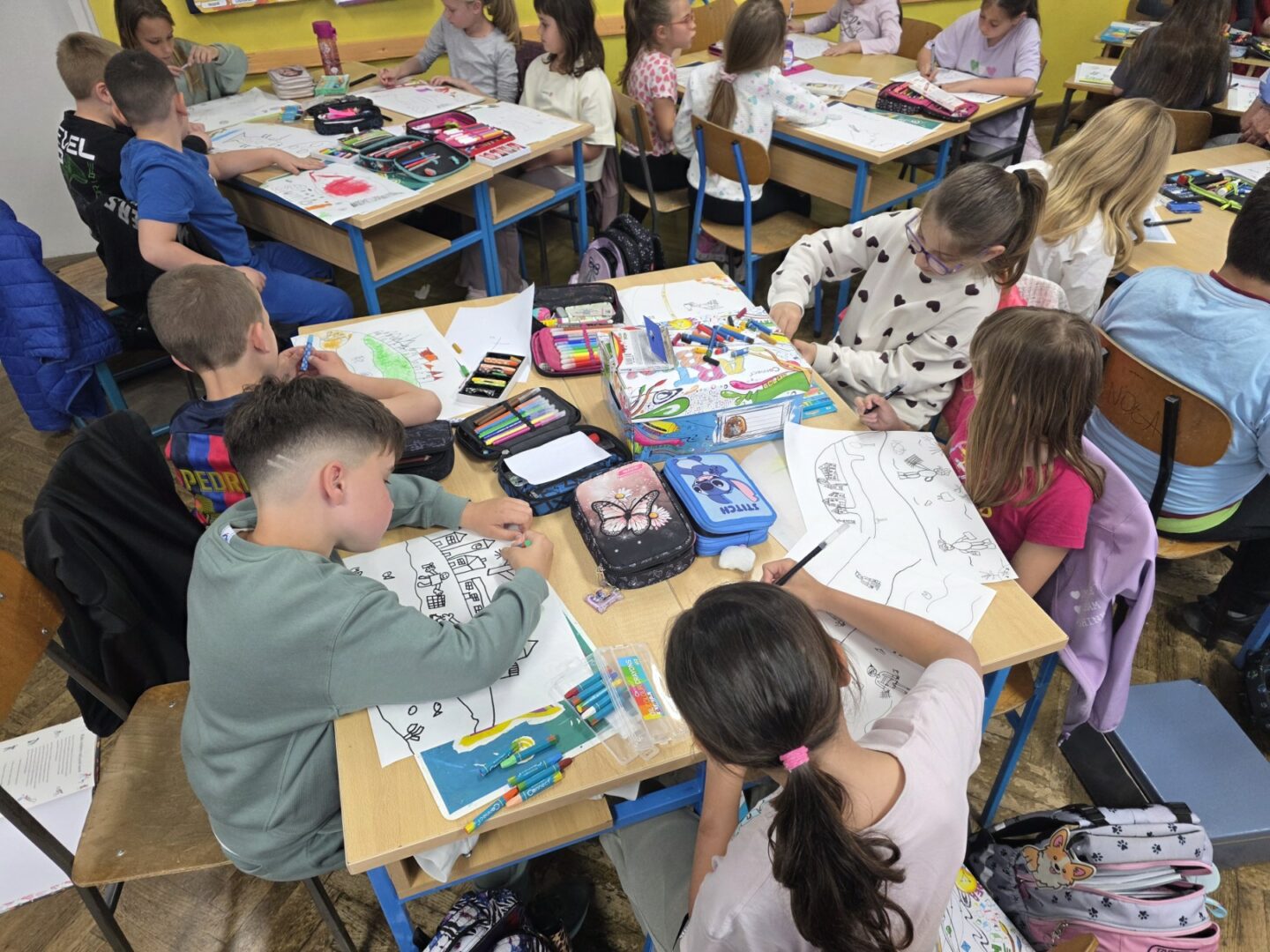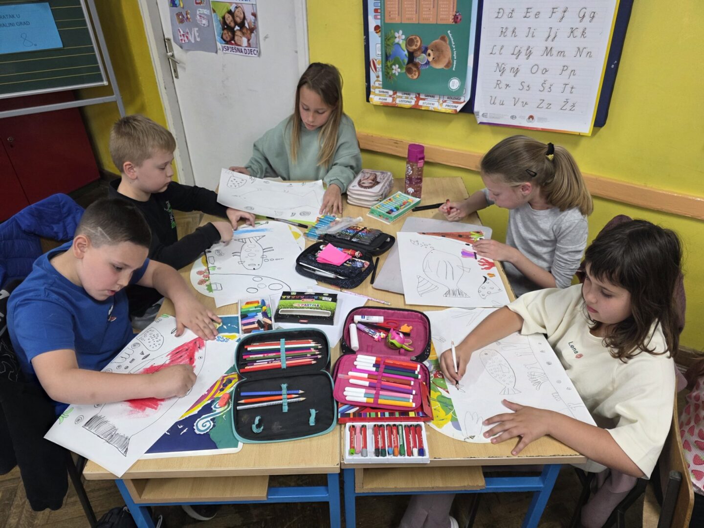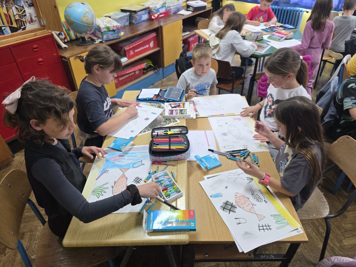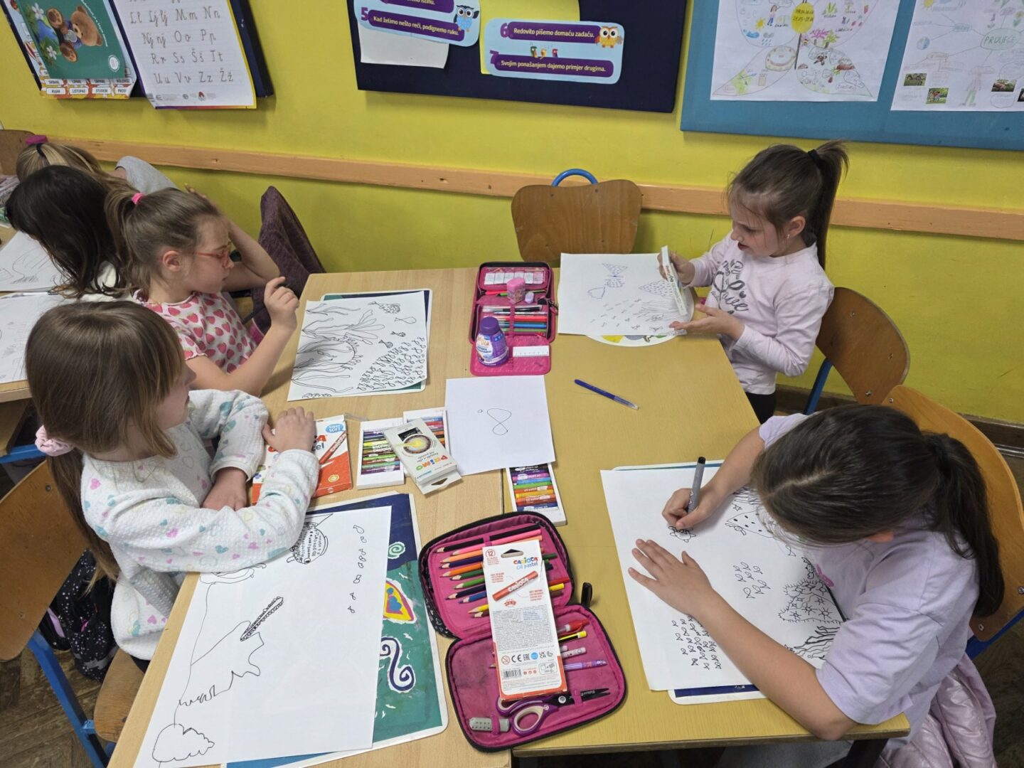 Učenici su kroz bajkaonice dobili prijatelje koji zajedno stvaraju, druže se, vesele, igraju se i uče. Uslijedila je izrada velikog panoa punog predivnih slika, šarenih riba i poticajnih poruka.