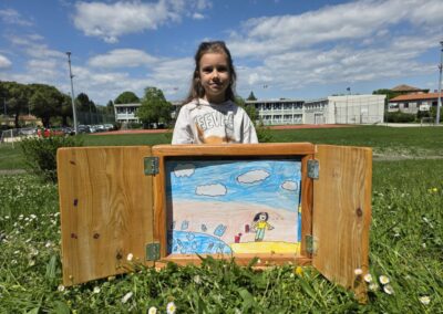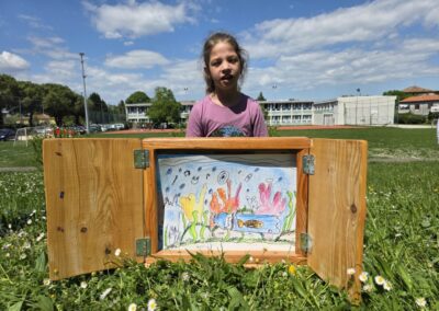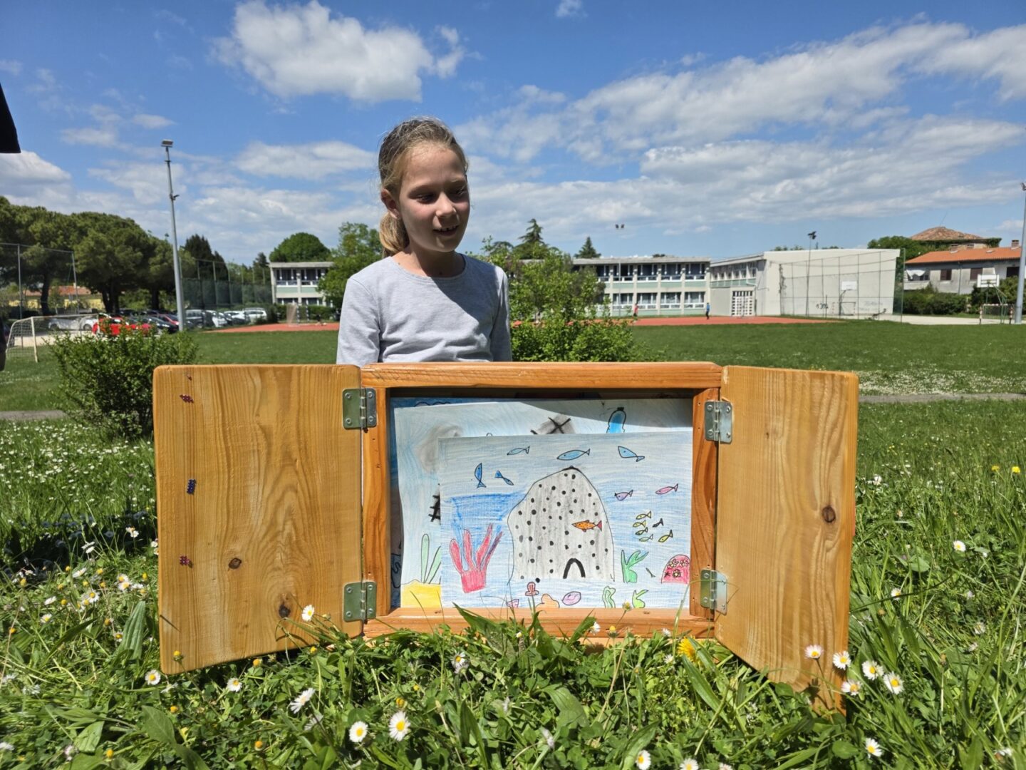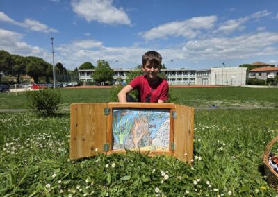 Podijeljeni u grupe, svatko je morao ilustrirati svoj dio priče. Uz opuštajuću glazbu, nastajala su prava umjetnička dijela. Svoje radove izložili su na razrednoj izložbi. U prirodi, među maslačcima i tratinčicama su odradili Kamishibaj kazališnu predstavu o Ribici Albi. Ponovili su svoja znanja o papirnatom kazalištu, nastanku kazališta i značaju istog u neka davna vremena.