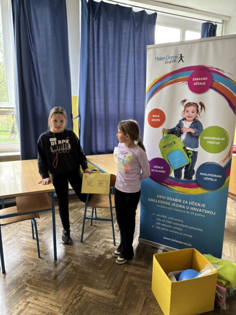 Najviše su im se svidjele igre Four Corners, kroz koju smo ponavljali gramatičke strukture, te Musical Chairs i Hot Potato, koje su bile odlične za utvrđivanje vokabulara. Uz puno smijeha, energije i timskog duha, djeca su aktivno sudjelovala i pokazala koliko učenje može biti zabavno!