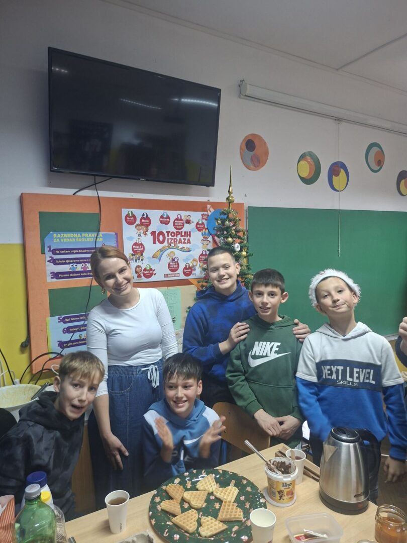 Na kraju druženja pobjednici su zasluženo nagrađeni svježe pečenim vaflima koje su učenici vrijedno pripremali tijekom cijele radionice. Atmosfera je bila ispunjena smijehom, zajedništvom i pravim blagdanskim duhom, a svi su sudionici ponijeli kući lijepe uspomene.