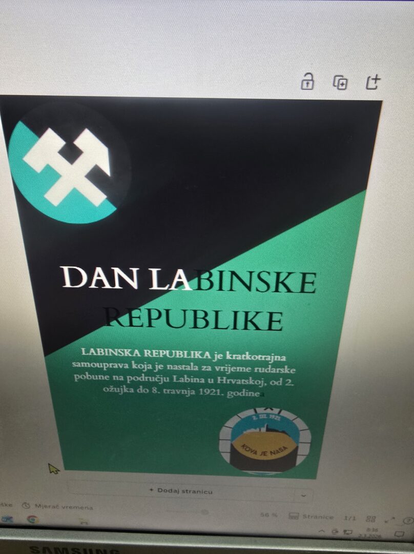 U sklopu nastave Hrvatskoga jezika učenici 7.a razreda izradili su zidne novine na temu Labinske republike te istraživali njezin povijesni, kulturni i društveni značaj za naš grad. Također su na satu Informatike izradili i letak na istu temu.