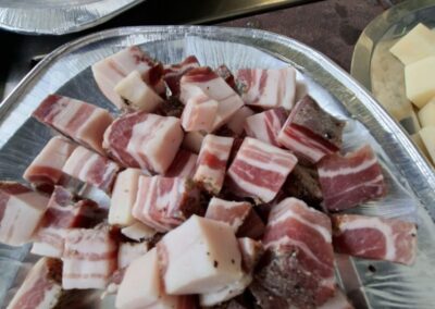 Rudarska marenda sastojala se od jednostavnih, ali zasitnih namirnica – kruha, pancete, sira, jaja, povrća, maneštre, jote i salate s krumpirom i grahom. Kroz ovu aktivnost željeli smo pokazati koliko je rudarski posao bio težak te koliko je skroman, ali hranjiv obrok bio važan za snagu i izdržljivost.