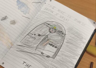 Razred 5.b na satu Engleskoga jezika izrađivao je zastavice za 105. obljetnicu Labinske republike s prigodnim natpisima.