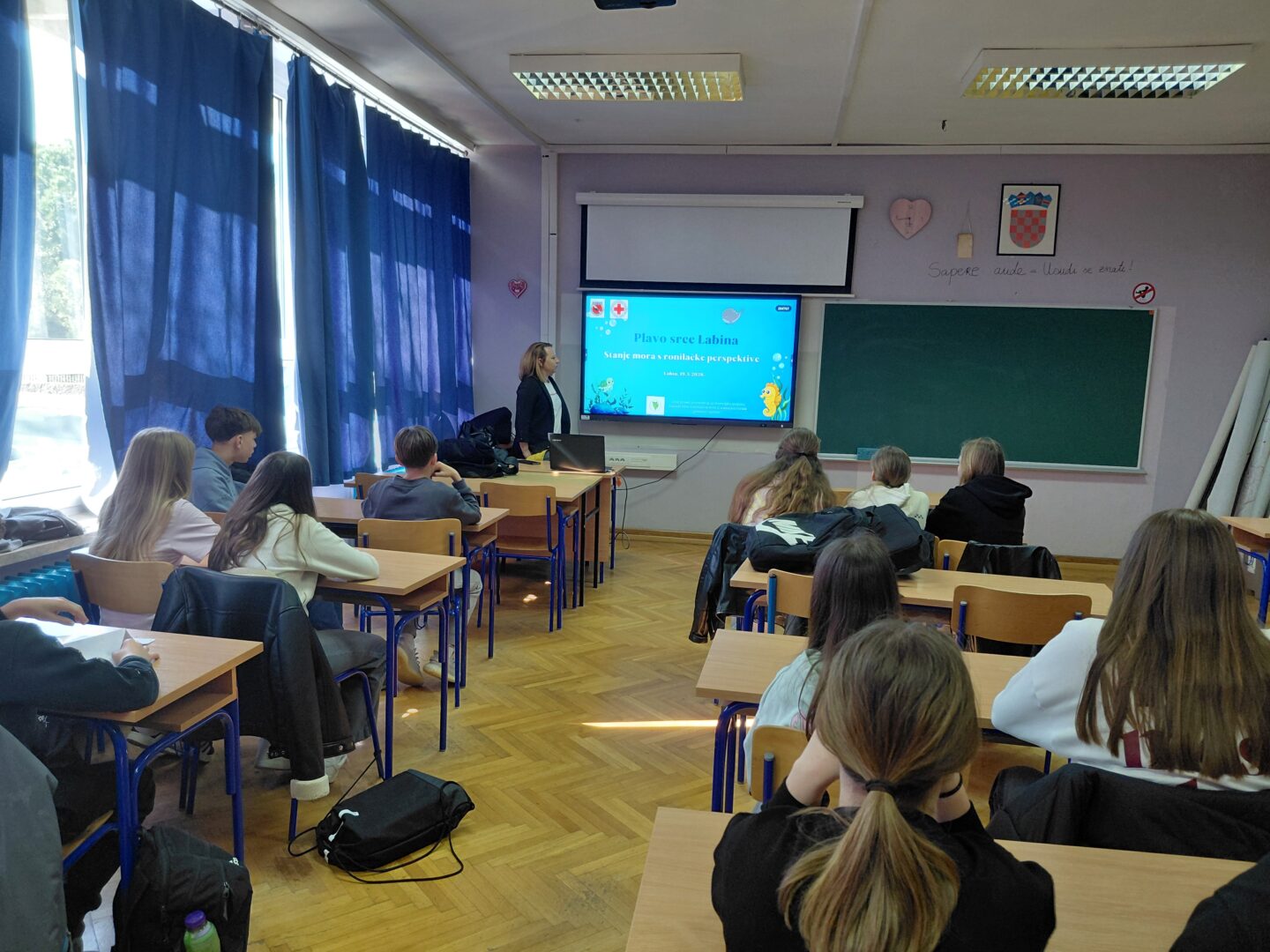 U okviru projekta „Plavo srce Labina – zajedničkim snagama za čisto podmorje“ našu skolu posjetila je Ivana Maric aktivna članica Društva podvodnih aktivnosti Rabac.