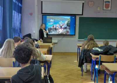 Učenicima šestih razreda je interaktivnim predavanjima približila stanje mora iz ronilačke perspektive. S puno entuzijazma i predanosti potaknula je učenike na razmišljanje o važnosti očuvanja podmorja. Svojim znanjem, iskustvom i iskrenom ljubavlju prema moru uspjela je prenijeti poruku koja se pamti i nosi dalje.